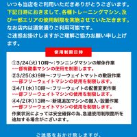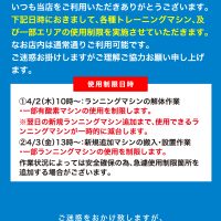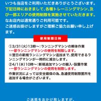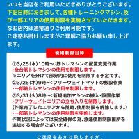 マシン追加の日程が決定しました。 マシン追加作業時は一部エリア・マシンの利用制限を行います。 ご迷惑をお掛けしますがご理解とご協力をお願い致します。【上越藤野新田店】マシン追加導入に伴うマシン使用制限のお知らせ