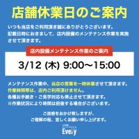 Every富山掛尾店にてご好評を頂いている高気圧酸素ルームの大変お得なキャンペーンのお知らせです! 当店で初めて酸素ルームを契約されるお客様、先着10名様限定で初月の利用料を2200円(税込)→500円(税込)とさせて頂 …【福井やしろ店】マシン追加導入に伴うマシン使用制限のお知らせ