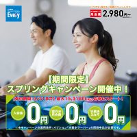 マットピラティスレッスン開催決定!! ピラティススタジオ「Blooming You」様と提携し、インストラクター「Urara」さんによるマットピラティスレッスンを開催する事が決定しました!! この機会に是非、お試しくださ …【Every】スプリングキャンペーン 開催中! ~ 入会金【無料】翌月分の月会費【無料】水素水サーバー3ヵ月分【無料】3月31日(火)まで ~
