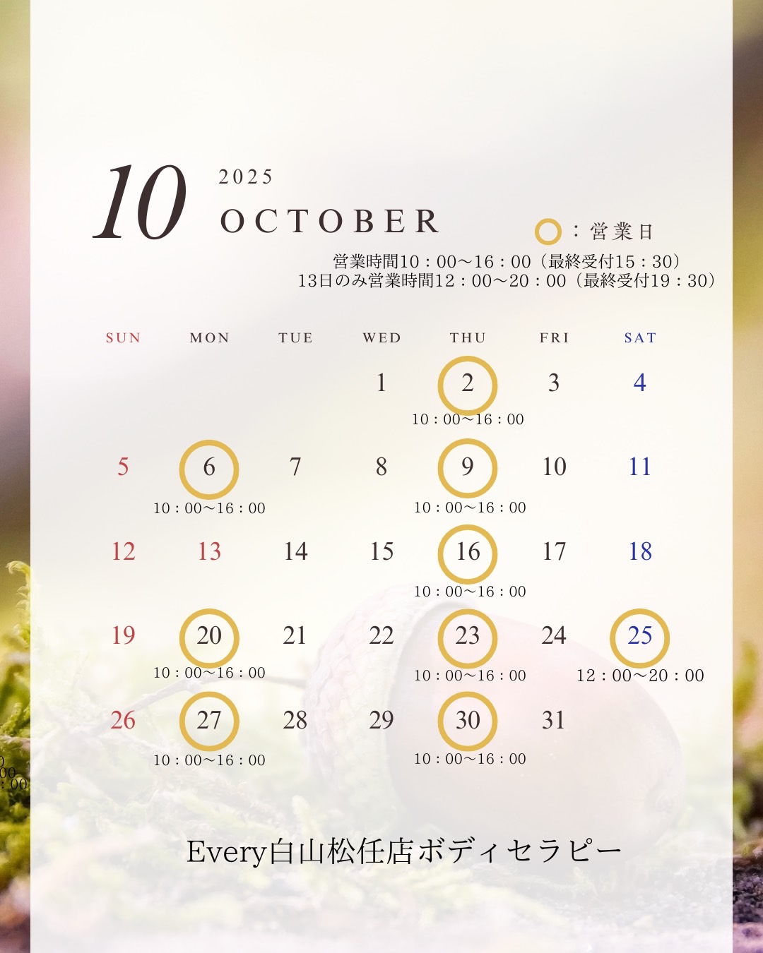 • 10月 9日(木) / 10:00~16:00(最終受付 15:30)