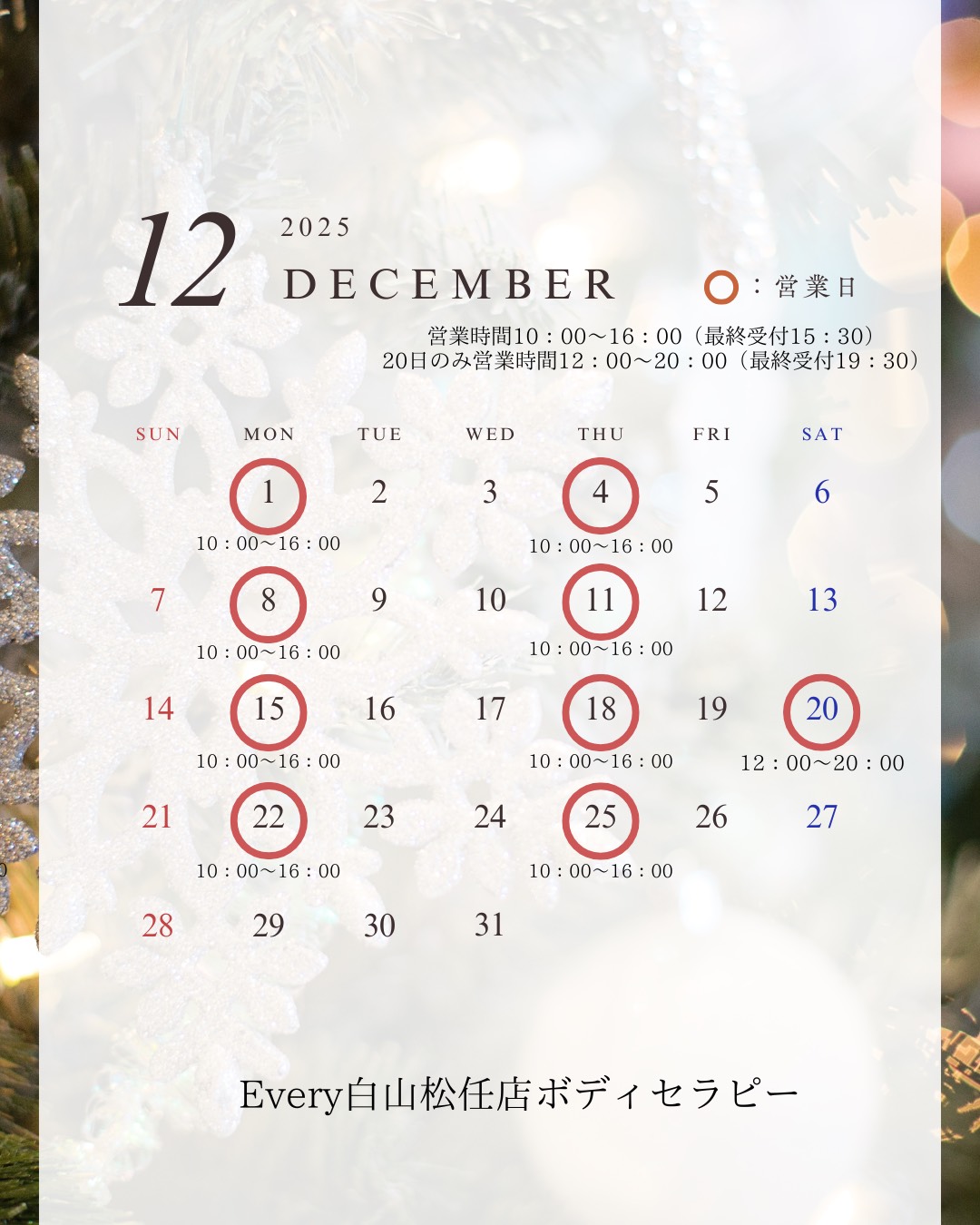 - 12月 20日(土) / 12:00~20:00(最終受付 19:30)