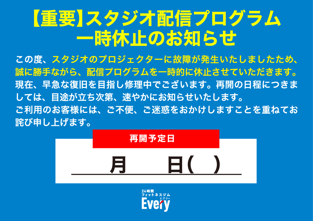 【重要】【金沢もりの里店】スタジオ配信プログラム一時休止のお知らせ