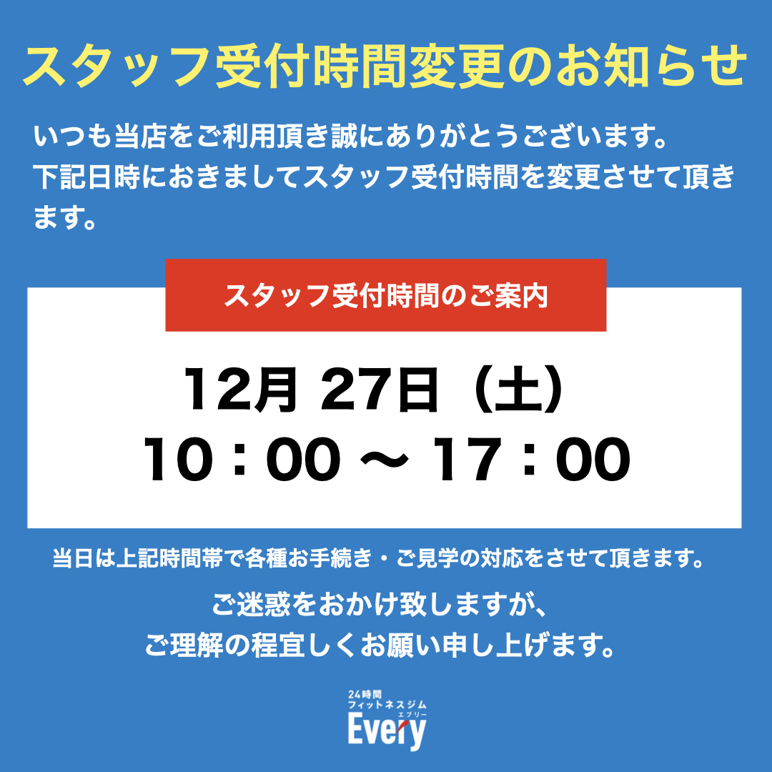 【富山掛尾店・高岡野村店】 スタッフ受付時間変更のお知らせ | 2025/12/27(土) 10:00~17:00まで
