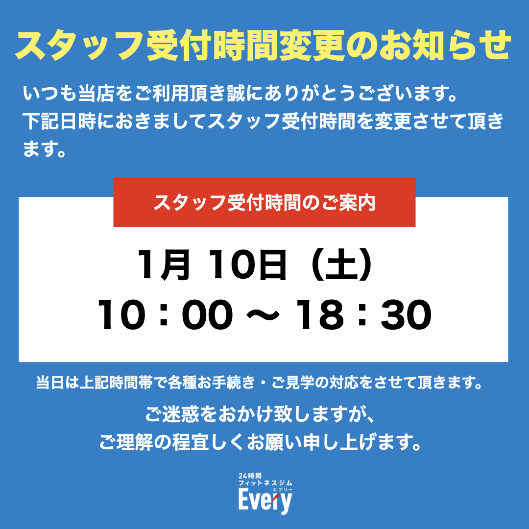 【金沢もりの里店】 スタッフ受付時間変更のお知らせ | 2026/1/10(土) 10:00~18:30まで