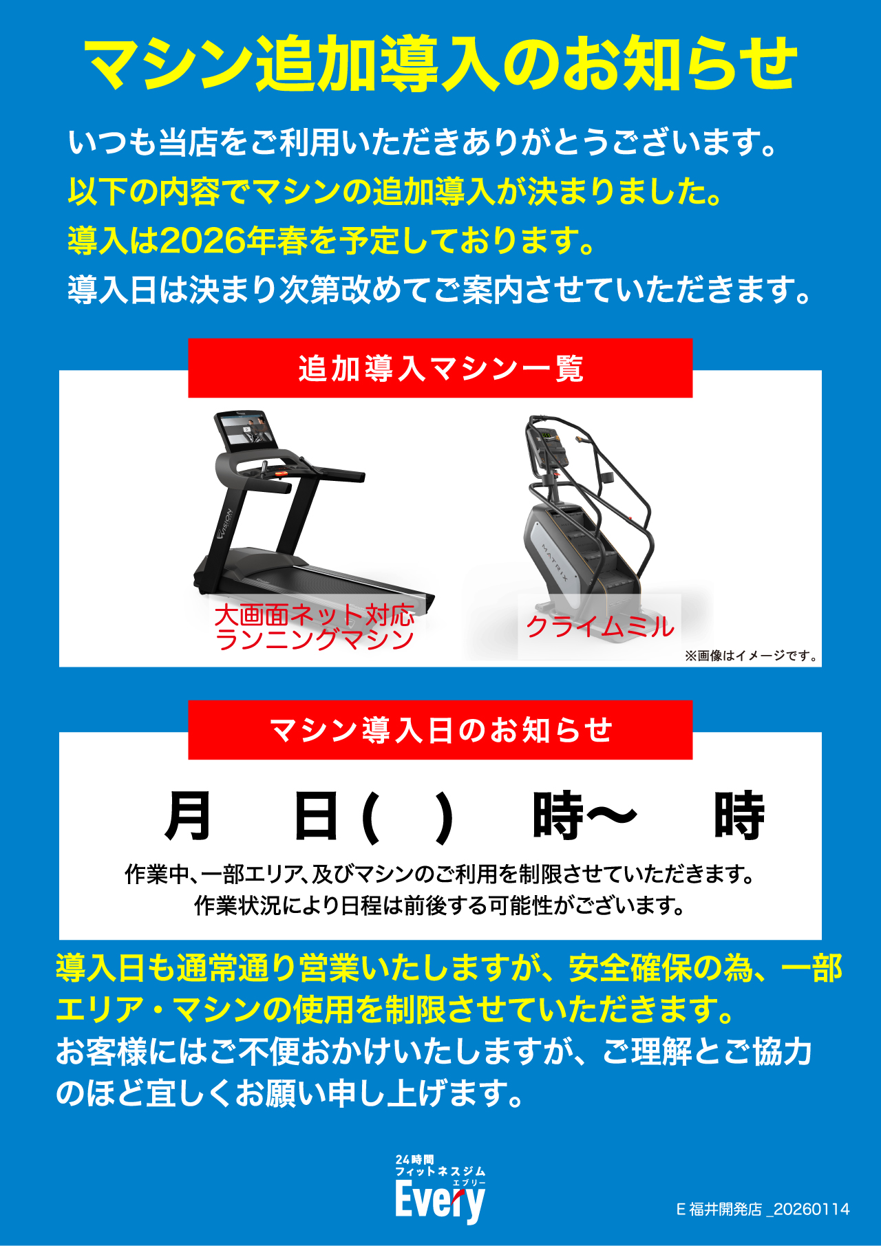 【福井開発店】【26年春予定】マシン追加導入のお知らせ