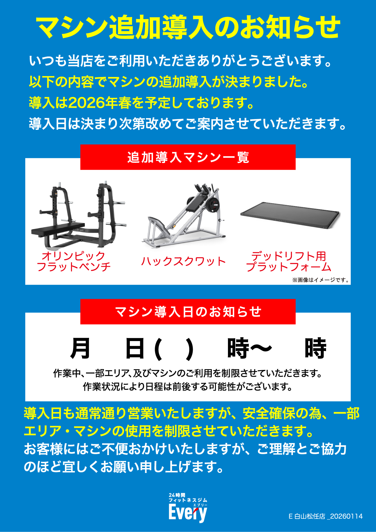 マシン追加作業時は一部エリア・マシンの利用制限を行います。
