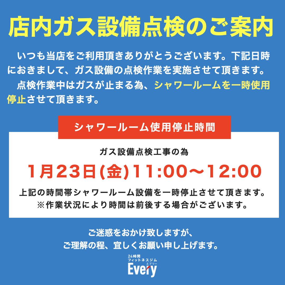 【鯖江店】店内ガス設備点検のご案内 | 2026年1月23日(金) 11:00~12:00まで