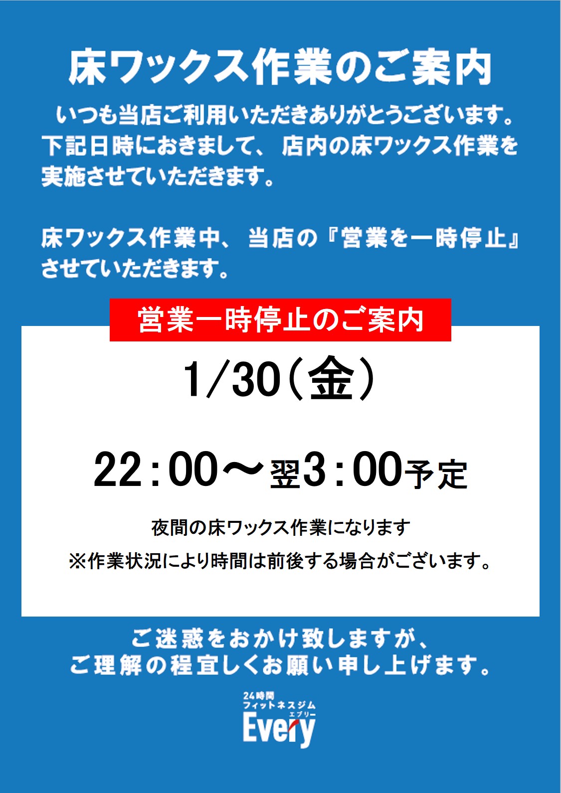 【松本村井店】床ワックス作業のご案内 | 2026年1月30日(金) 22:00~翌15:00