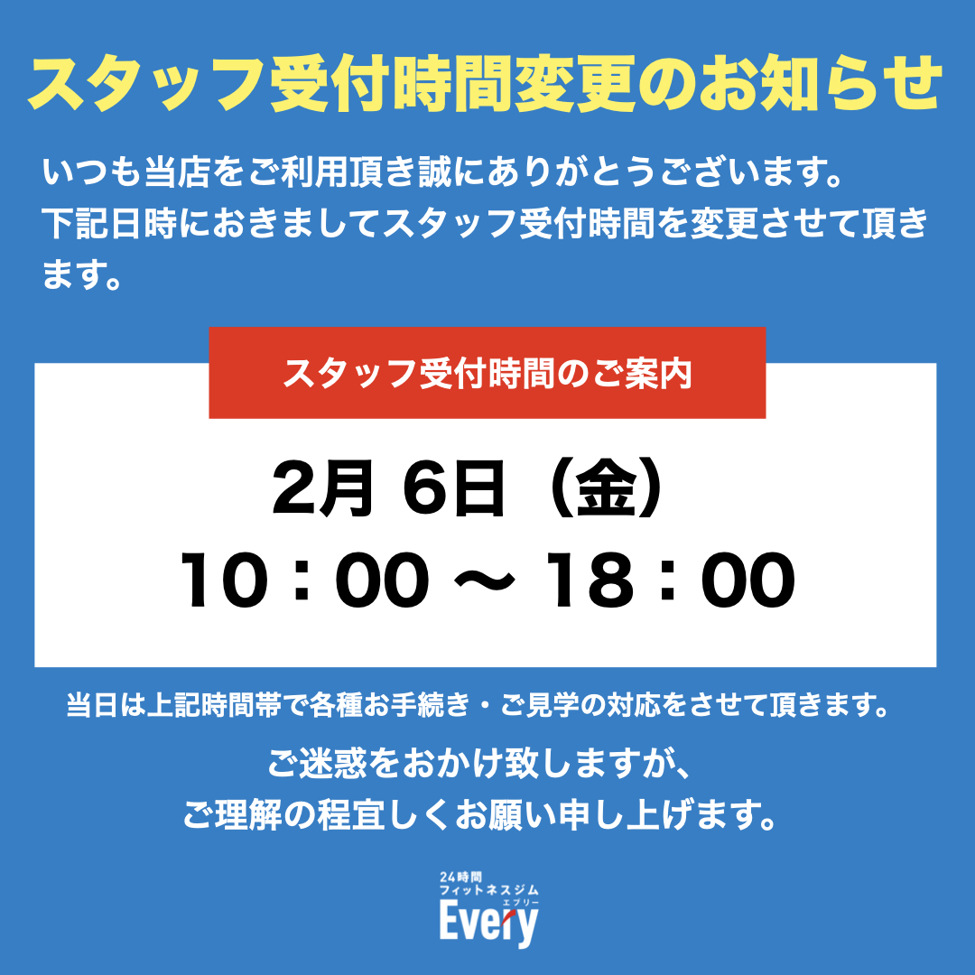 【富山豊田店】スタッフ受付時間変更のご案内 | 2026年2月6日(金) 10:00~18:00まで