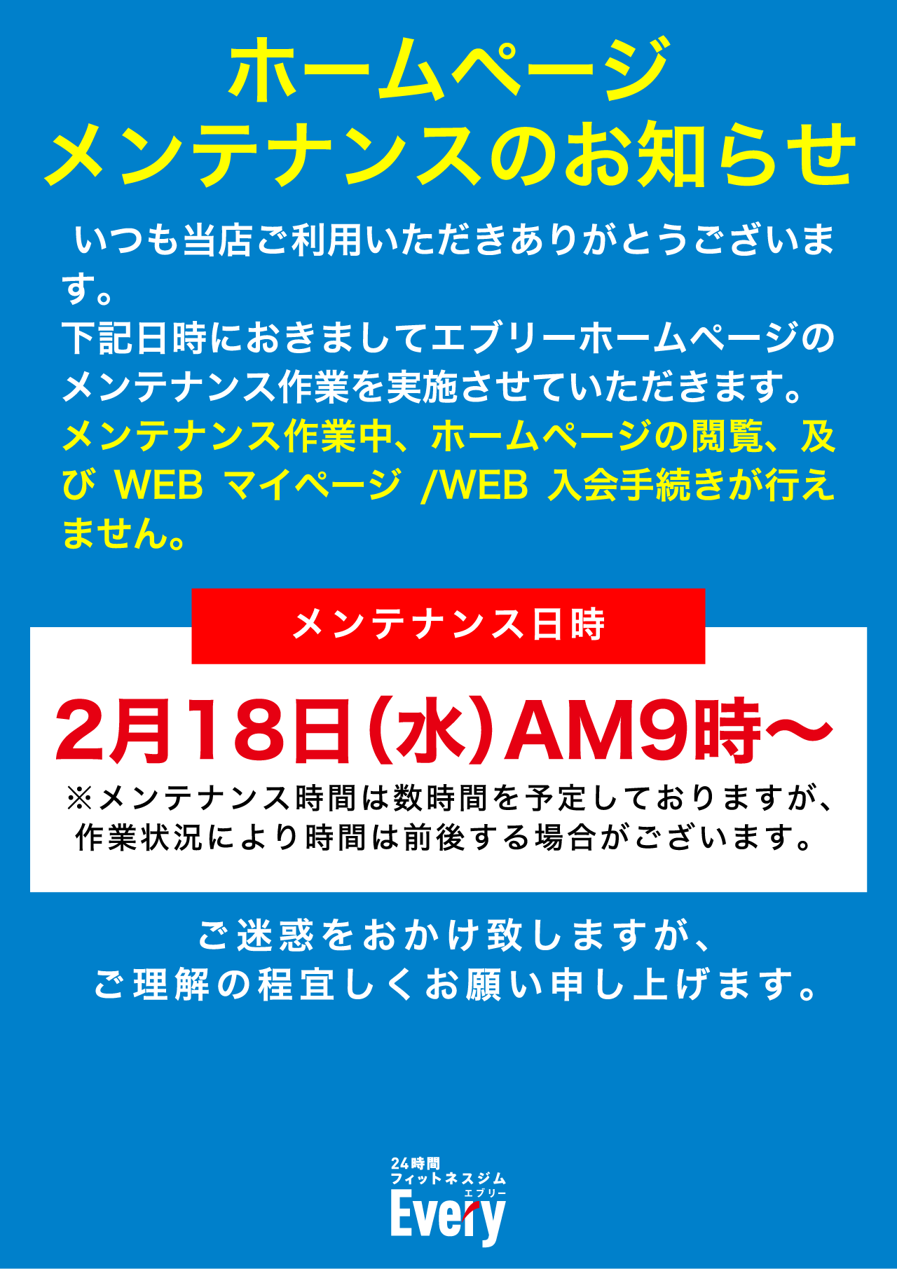 【重要】ホームページメンテナンスのお知らせ