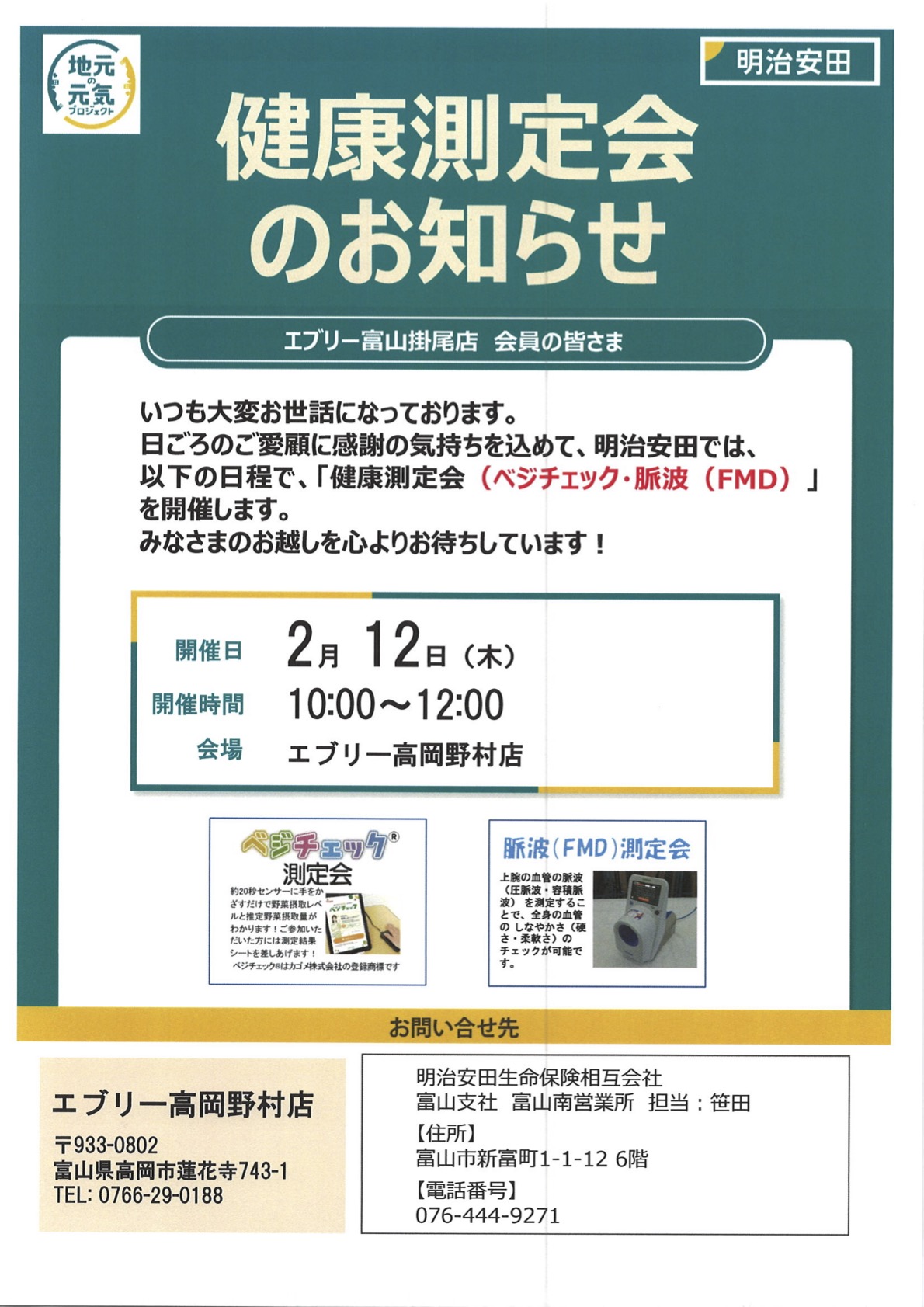 • 【高岡野村店】健康測定会のお知らせ | 2月12日(木)10:00~12:00