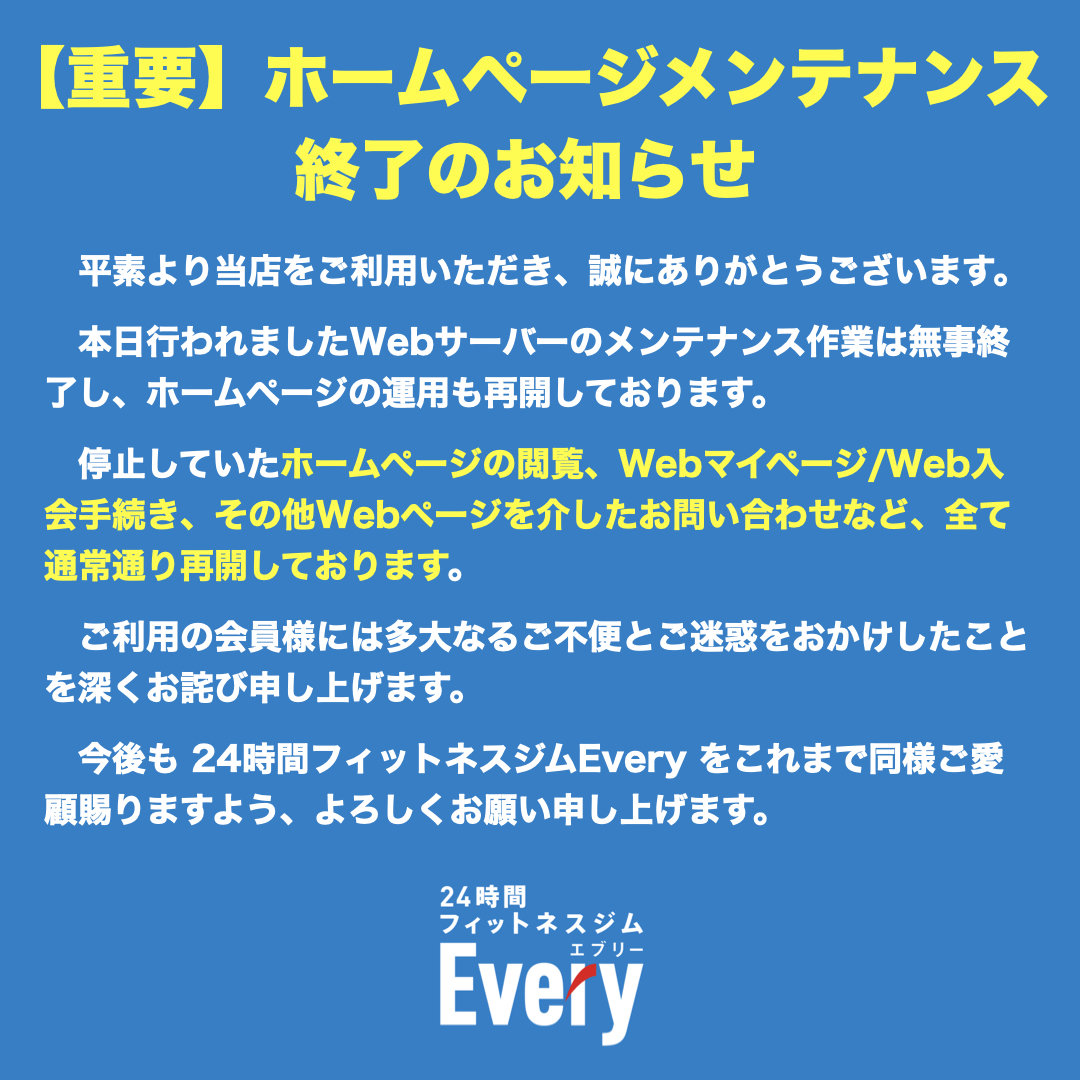 【重要】ホームページメンテナンス終了のお知らせ
