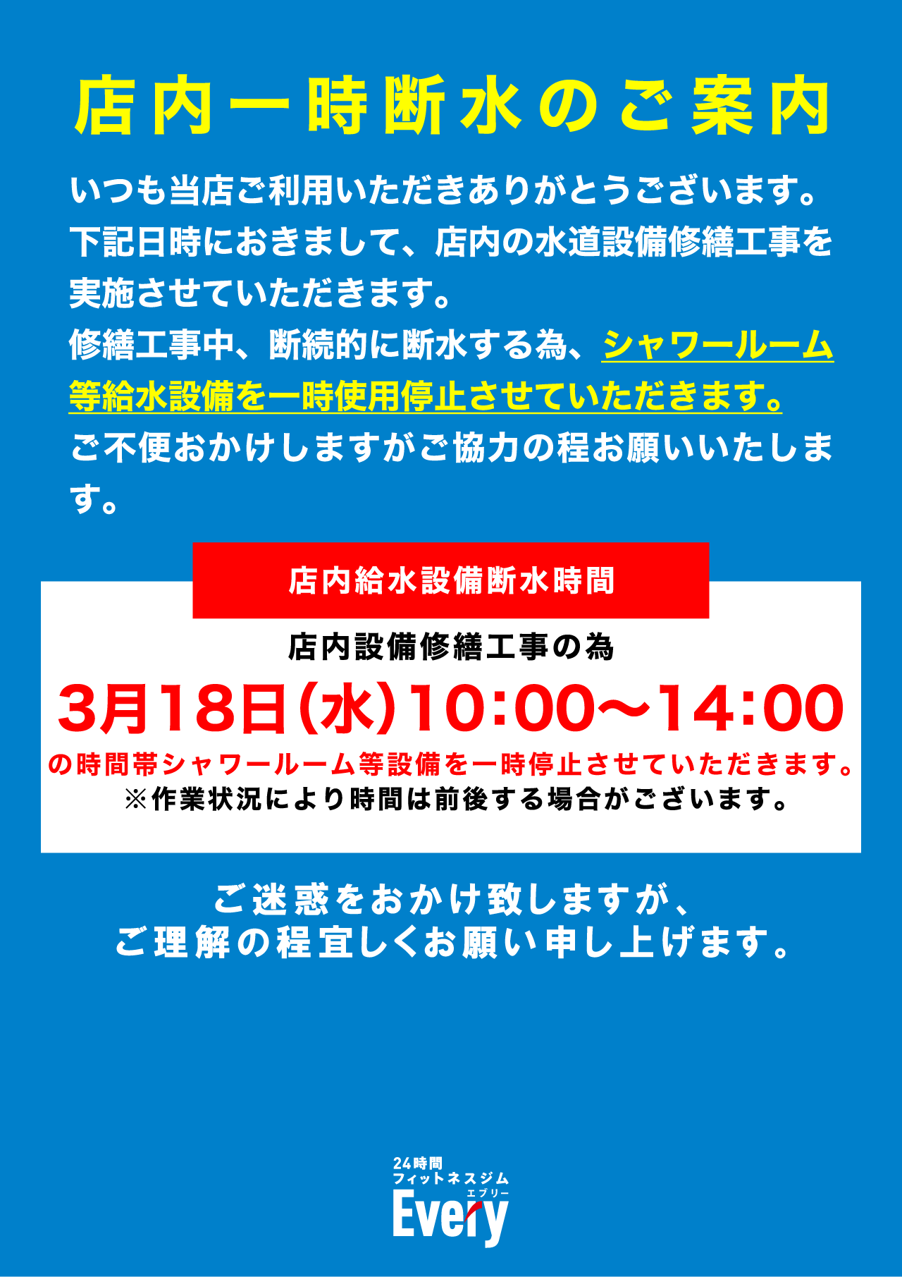 【上越藤野新田店】店内一時断水のご案内 | 2026年3月18日(水) 10:00~14:00
