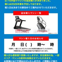 26年春にマシンを追加導入することが決定しました! マシン追加作業時は一部エリア・マシンの利用制限を行います。 ご迷惑をお掛けしますがご理解とご協力をお願い致します。 詳しい日程は決定次第改めてお知らせ致します。【福井開発店】【26年春予定】マシン追加導入のお知らせ