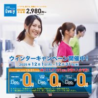 【Every】ウィンターキャンペーン 開催中! ~ 事務手数料【無料】入会月の月会費【無料】水素水サーバー3ヵ月分【無料】12月31日(水)まで ~